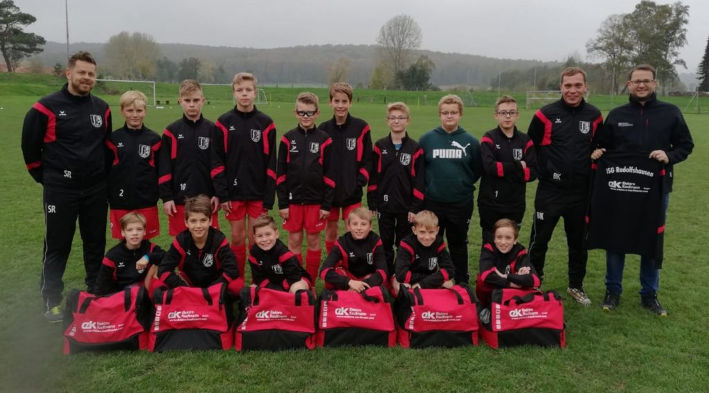 Abhilfe hat hier im Oktober die Firma Malermeister Wucherpfennig aus Seulingen geschaffen. Durch die großzügige Spende von Malermeister Wucherpfennig wurden alle 15 Jugendlichen sowie die Trainer mit passenden neuen Trainingsanzügen ausgestattet. Das einheitliche Auftreten der Mannschaft wurde ergänzt durch eine weitere großzügige Spende der Firma Elektro Kaufmann in Landolfshausen. Diese statteten die Jugendlichen mit passenden Sporttaschen aus.